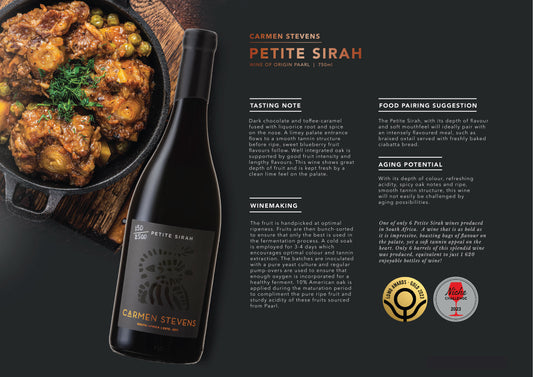 Learn moreCarmen Stevens Wines was established in 2011. In 1995 Carmen graduated as the first black South African to study the art of winemaking in South Africa.