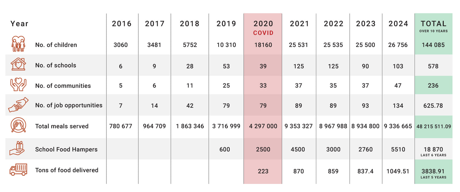 In 2011 the Carmen Stevens Foundation started providing a cup of soup three times a week to primary school learners in Belhar. From the age of 13, Carmen lived in this community and is well aware that a huge percentage of school learners attend school hungry.
