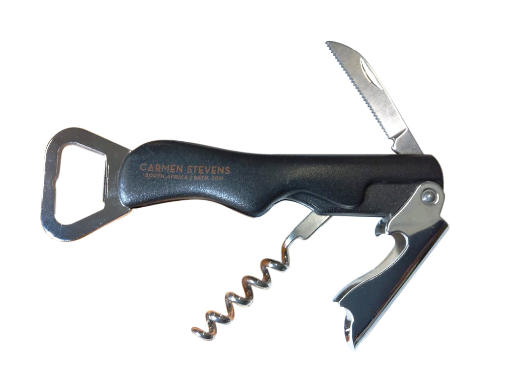 Crafted with a comfortable black grip handle and with the Carmen Stevens Wines logo this corkscrew brings a touch of elegance to every pour. Whether you're at home, hosting guests, or working in hospitality, it's the essential tool for smooth and efficient wine service.
